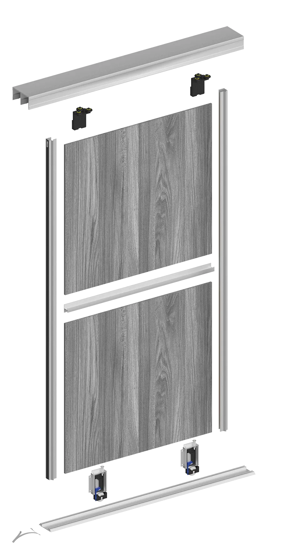 Комплект для сборки одной раздвижной двери из ЛДСП 16 мм включает: